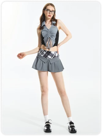 Be the first to review “Kollyy Y2K Gray Drawstring V-Neck Back To School Top Tank Top & Cami” Cancel reply