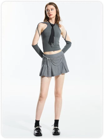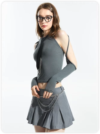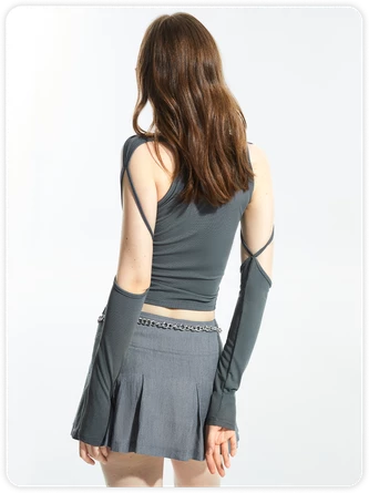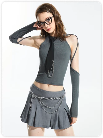 Kollyy Y2K Gray Lace Up Top T-Shirt