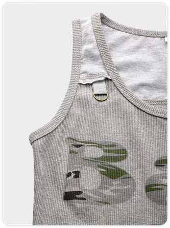 Kollyy Y2K Gray Letter Patchwork Top Tank Top & Cami