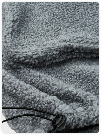 Kollyy Y2k Gray Sherpa Pockets Drawstring Top Hoodie & Sweatshirt