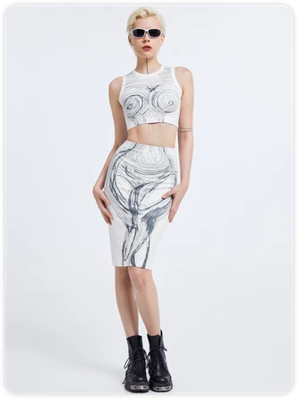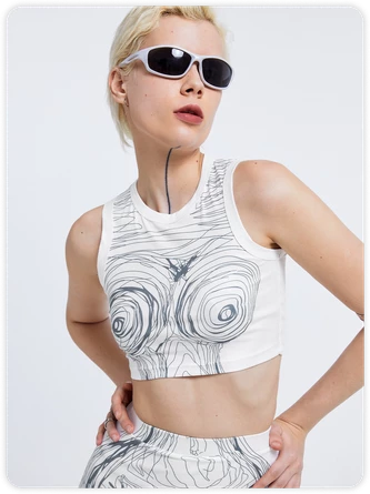 Kollyy Y2K White Body Print Top Tank Top & Cami