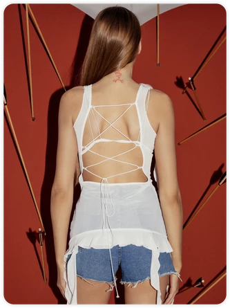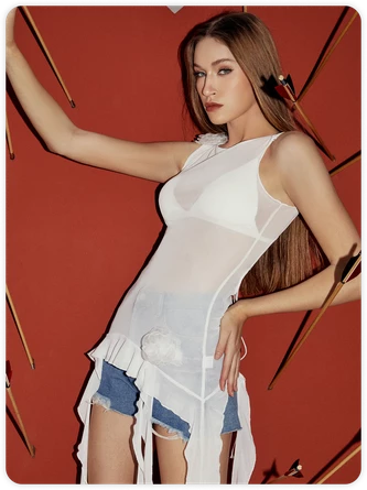 Come to Kollyy to buy Tops at a discounted price, SPU: 48QHTOC72218, Color: White, Sleeve Length:Sleeveless, Clothes Length:Mid-long.