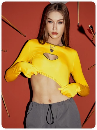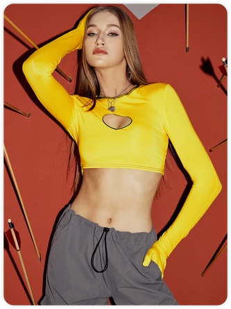 Kollyy Y2k Yellow Cut Out Top T-Shirt