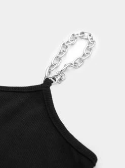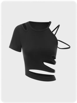 Kollyy Black Asymmetrical Design Cut Out Top Tank Top & Cami