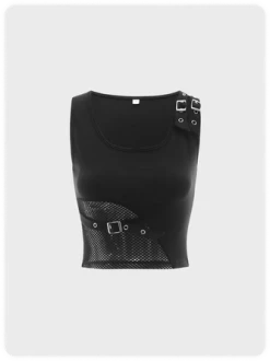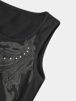 Kollyy Black Hotfix Rhinestone Crew Neck Top Tank Top & Cami