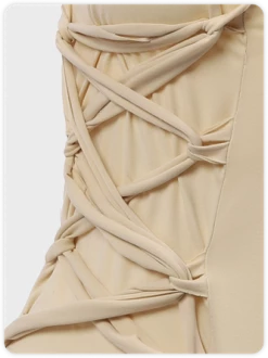 Kollyy Edgy Khaki Tie Up Asymmetrical Design Top Tank Top & Cami