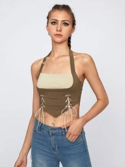 Kollyy Multicolor Lace-Up Design Sleeveless Top Tank Top & Cami