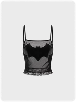 Kollyy Punk Black Mesh Double Layer Halloween Top Tank Top & Cami