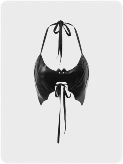 Kollyy Punk Black Mesh Pu Patchwork Halloween Top Tank Top & Cami