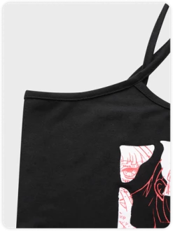 Kollyy Punk Black Lace-Up Design Graffiti Halloween Top Tank Top & Cami