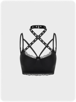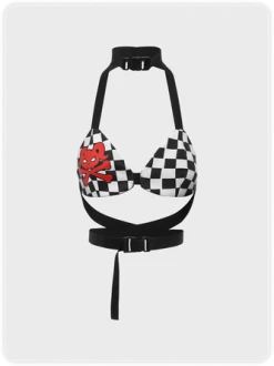Kollyy Punk Black Plaid Skull Removable Straps Top Tank Top & Cami