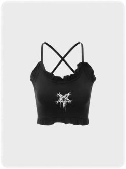 Kollyy Punk Black Ruffles Star Halloween Top Tank Top & Cami