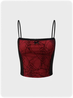 Kollyy Punk Red Mesh Double Layer Halloween Top Tank Top & Cami