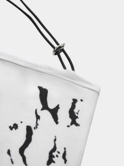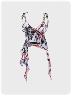 Kollyy Punk White Lace Up Graffiti Asymmetrical Design Halloween Top