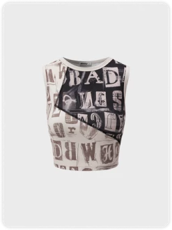 Kollyy Street Brown Mesh Asymmetrical Design Vintage Top Tank Top & Cami